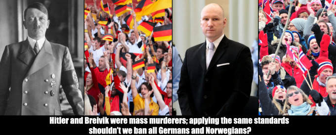 And what about Hitler? He was German, and he was responsible for millions of deaths; shouldn’t we ban all Germans from entering the country?